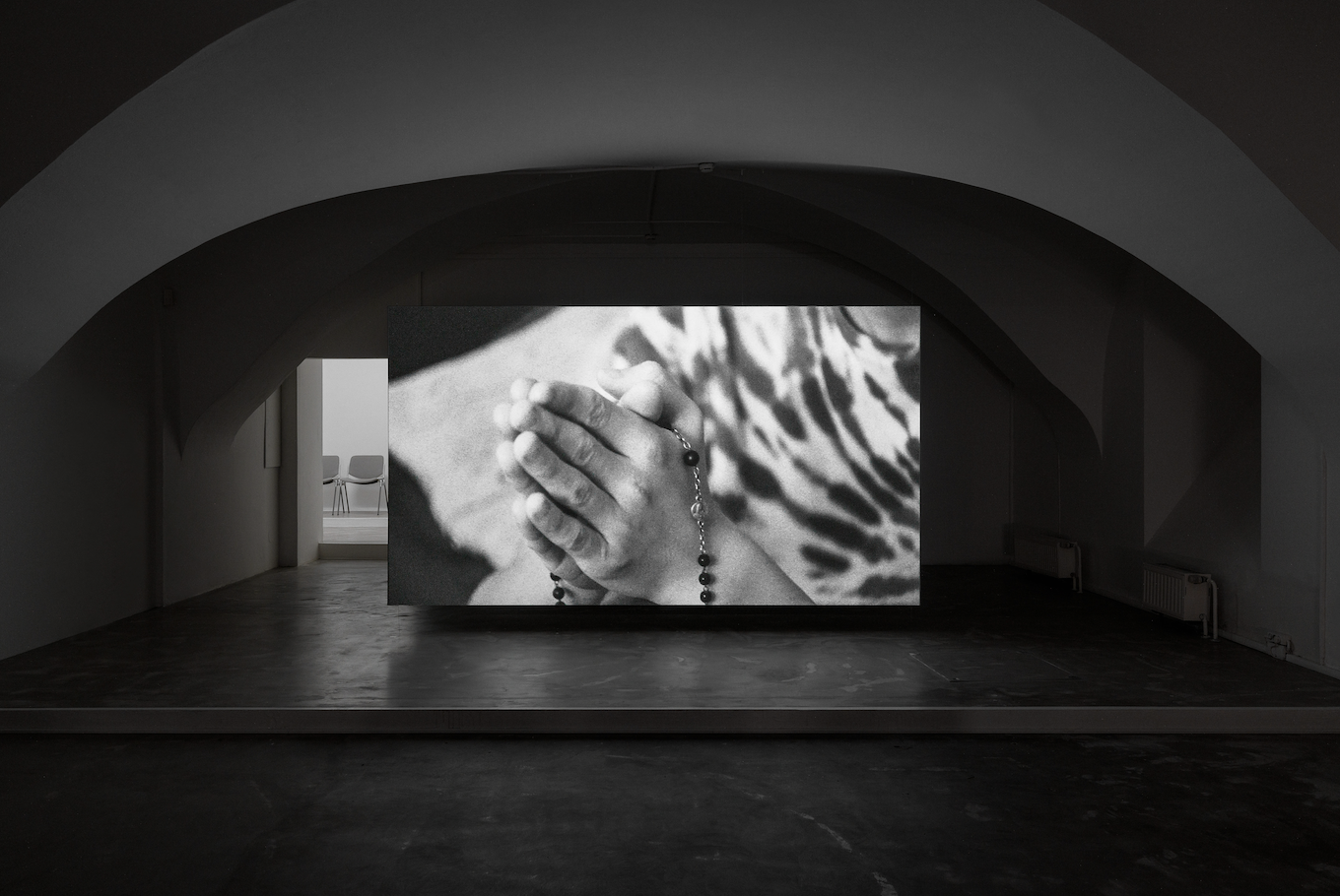 Wir treffen uns, um über Lacrimosa zu sprechen, Josefs aktuelle Einzelausstellung im Grazer Kunstverein, kuratiert von Tom Engels. Man wird von ein paar Möbelstücken empfangen, mit denen Josef im Haus seiner Tante in Kärnten aufwuchs. Es ist auch ein Kindersarg da. Und ein Gemälde. Und ein Stuhl, der kaum ein Gefühl von Bequemlichkeit hervorrufen kann. Seien wir ehrlich, es ist schräg, einen Kindersarg zu zeigen. Aber hier, innerhalb einer filmischen Transformation, funktionieren Zeit und Raum anders. Dies ist kein Raum, der an das Hier und Jetzt gebunden ist. Stimme und Bild sind verschoben, selbst wenn sie synchronisiert sind. Dieser Ort gehört eher in die Kategorie der Heterotopie. Oder ein in den Raum übersetztes Notizbuch eines Therapeuten. Josef aktiviert persönliche Geschichten auf eine Art und Weise, von der man nur träumen kann. Ein facettenreicher zahnmedizinischer Albtraum trifft auf den Inhalt einer Kammer, in der man sich verstecken kann – oder vor der man fliehen kann.