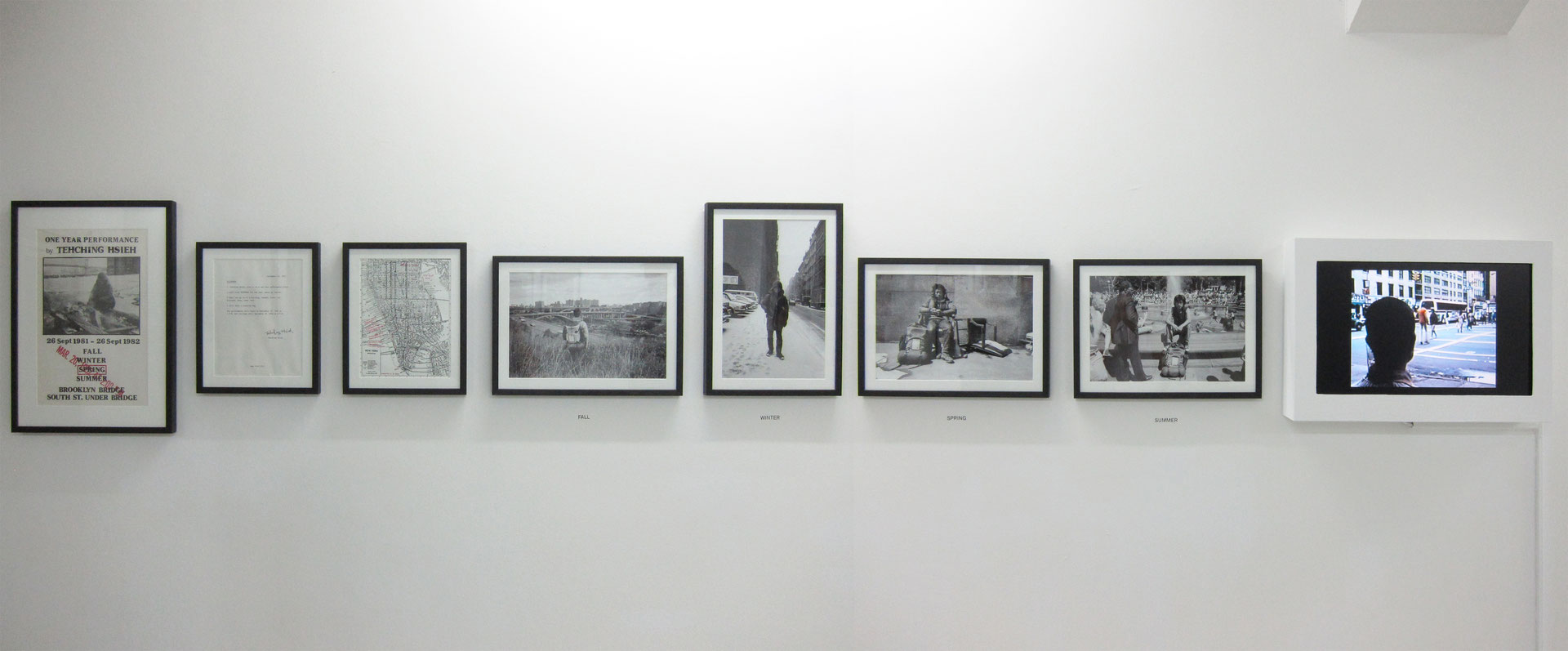 Eine objektive Verbindung besteht jedoch in ihrer Zeitgenossenschaft und einer Örtlichkeit: Alle vier Künstler lebten in den 1980er-Jahren in derselben Stadt, in New York. Die Ausstellung handelt mithin in erster Linie von New York, genauer gesagt, von der damaligen Kunstszene in Downtown Manhattan. Füglich erkennt man in der Fotosammlung Ai Weiweis aus dieser Zeit nicht nur die vier hier ausgestellten Künstler, sondern auch Berühmtheiten wie Allen Ginsberg und darüber hinaus Ereignisse wie die Unruhen auf dem Tompkins Square im Sommer 1988. Der gemeinsame Erfahrungshintergrund bezieht sich also spezifisch auf New York City, das als prägend und entscheidend für ihre künstlerische Entwicklung postuliert wird – Tsieh hat nie anderswo gelebt –, und nicht auf ihre dürftige Beziehung zur Kunst Chinas. Während Ai Weiwei nämlich heute, besonders international, als prägender Kunststar Chinas gilt, weiß man über seine Zeit und seine Arbeit in New York nur wenig. Hier sieht man ihn auf fröhlichen, aber auch berührenden Fotos vor Andy Warhols Selbstporträtsiebdrucken als ebendiesen posieren, und Frog King eine Performance auf der Free-Tibet-Ausstellung machen, die, was erstaunen mag, von Ai Weiwei organisiert wurde.