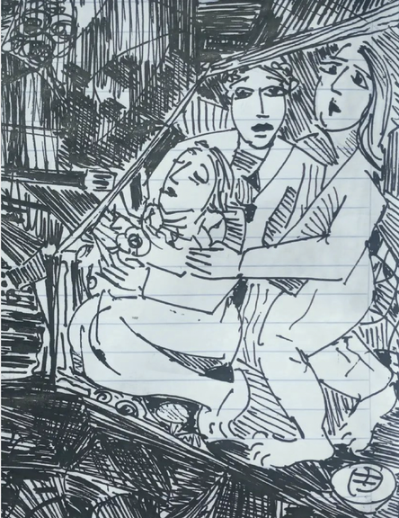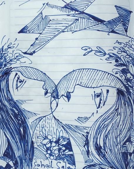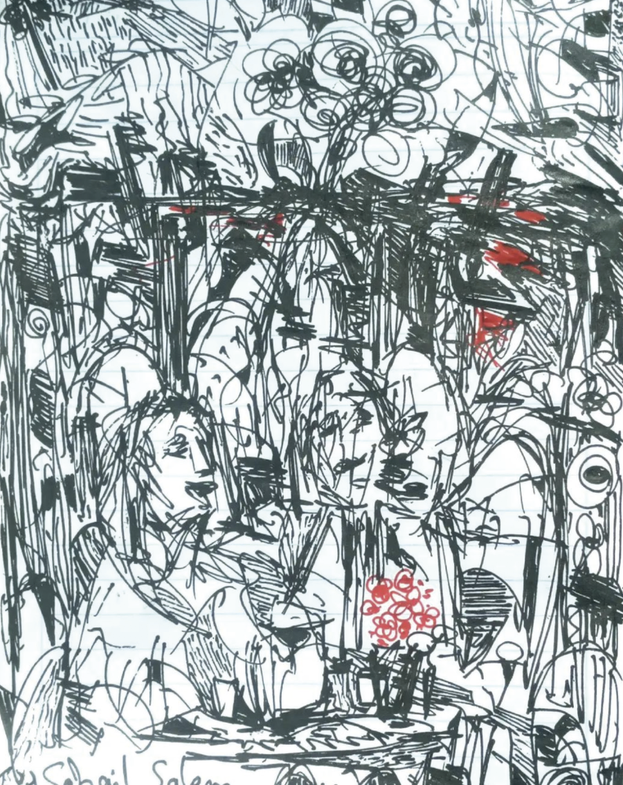 Der palästinensische Künstler Sohail Salem ist Mitbegründer der Eltiqa Gallery in Gaza, die unter anderem Gast auf der documenta fifteen war und im Dezember 2023 bei einem israelischen Luftangriff zerstört wurde. Seit Beginn des Krieges hält Salem Eindrücke und subjektive Auswirkungen der Zerstörungen in tagebuchartigen Zeichnungen fest.