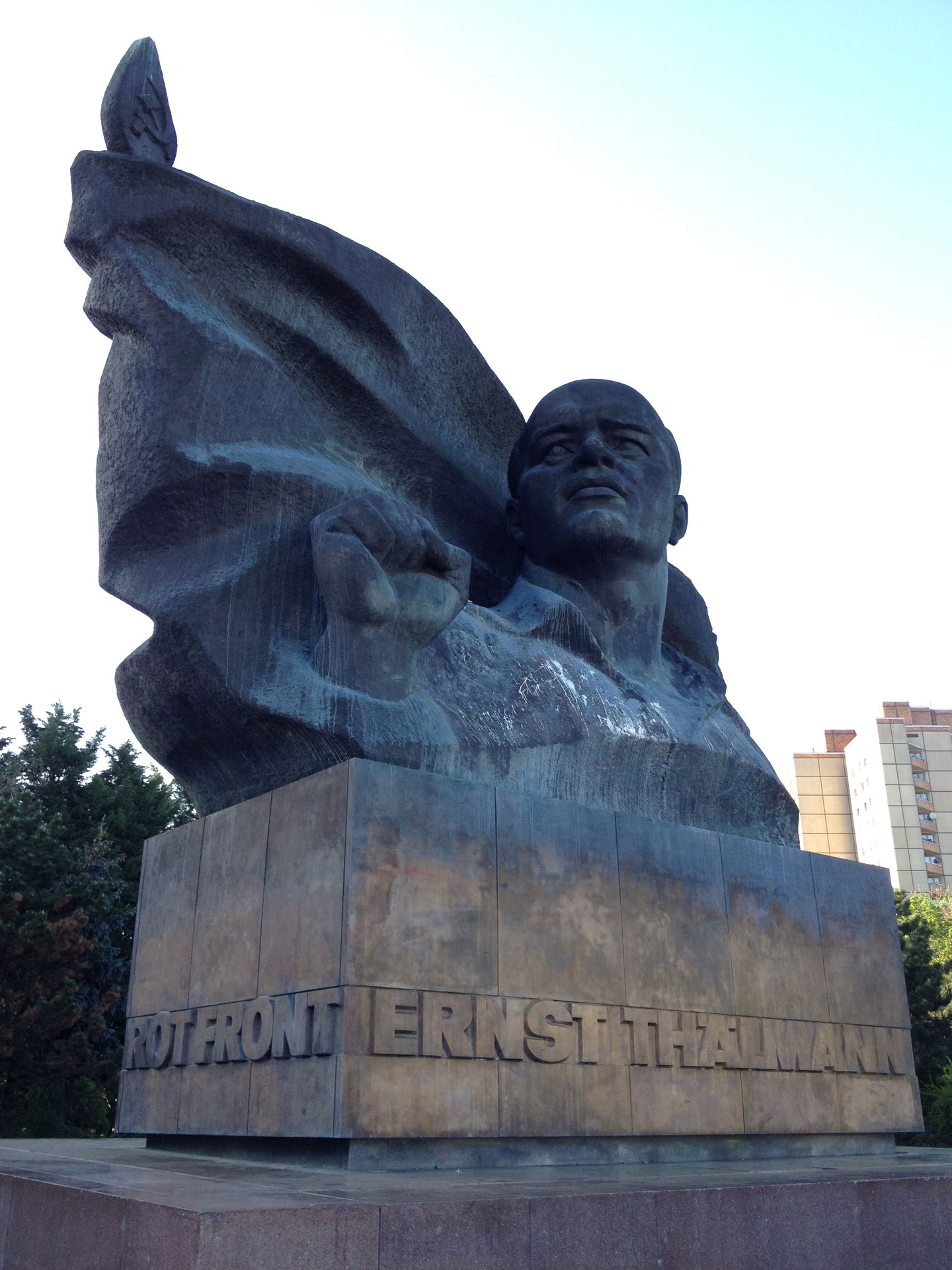 two senses: they show the negative imprint of a fist, and also what remains today of the Red Front, the communist movement that was so influential throughout the twentieth century. This is roughly the idea cast here in bronze. The meaning cannot be derived immediately through the aesthetic experience of the work, but can only be inferred by bringing in the title as well. In contrast, the name of the Thälmann monument simply recites what can already be seen.